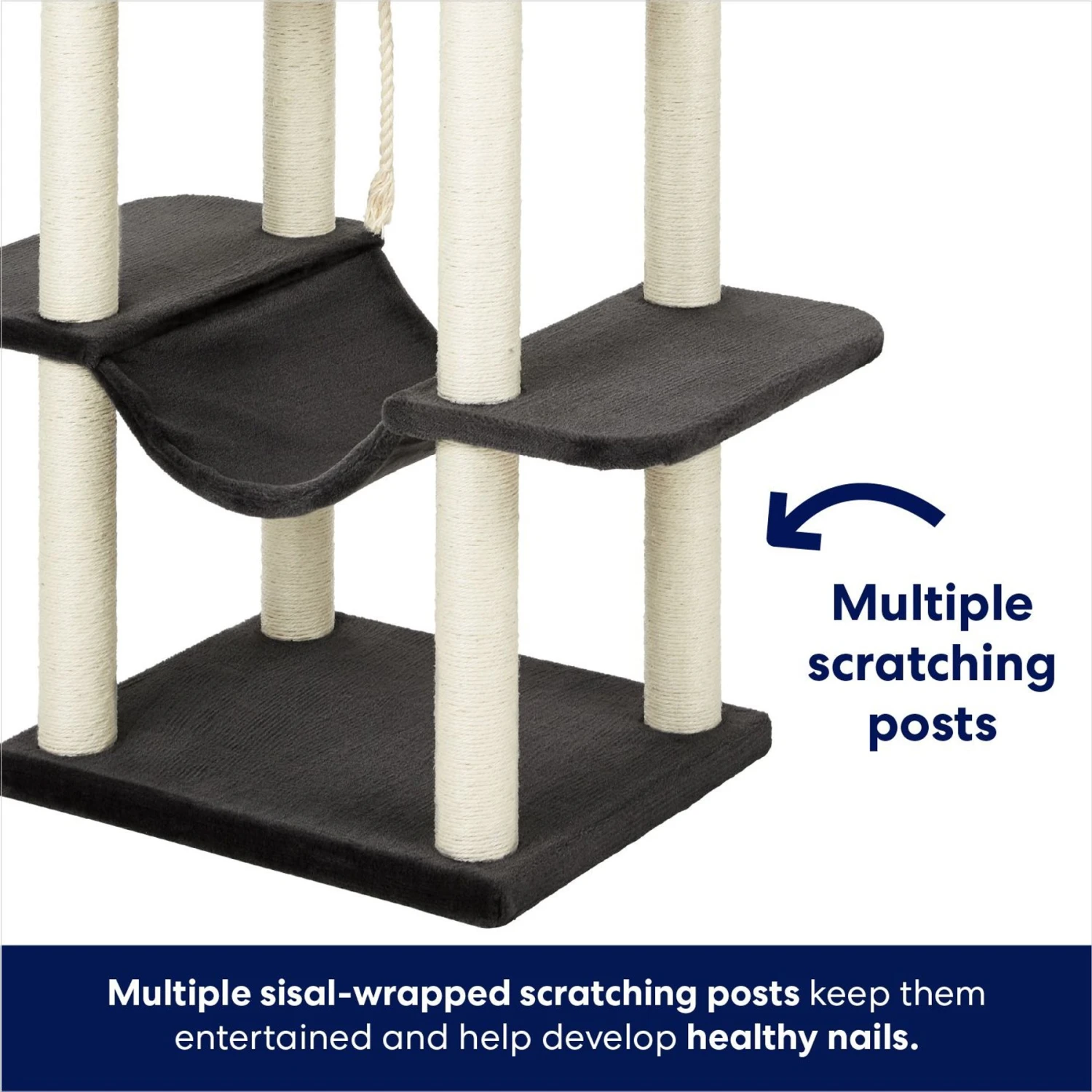 - Natural sisal posts encourage healthy nail scratching and promote exercise.