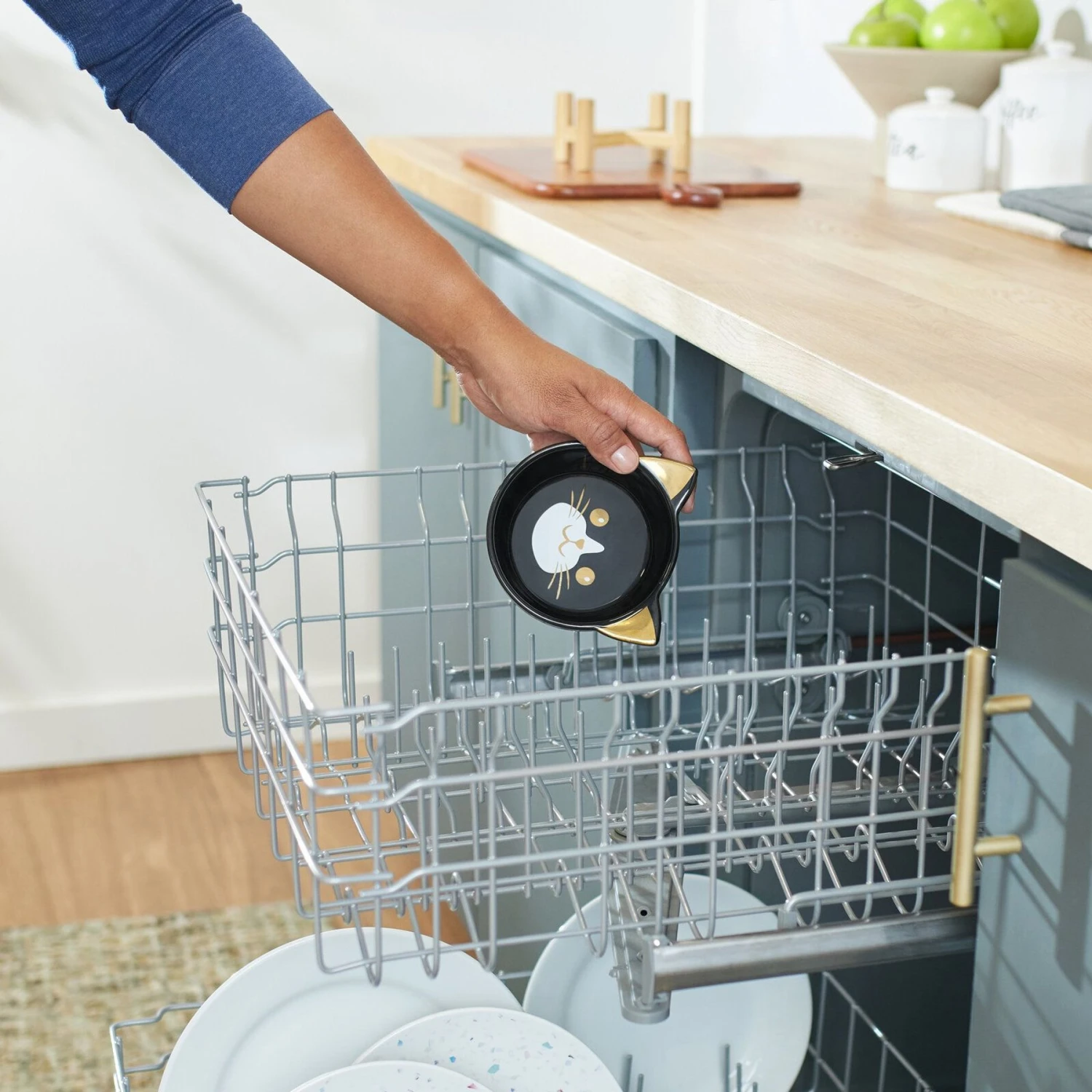 Frisco Cat Face Elevated Bamboo Non-Skid Ceramic Cat Bowl, Black, 1 Cups