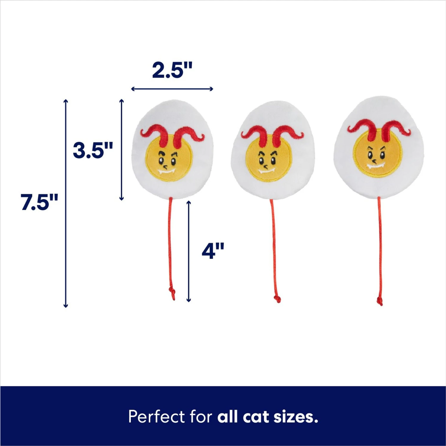 - Frisco Halloween haunted devil eggs plush cat toys are perfect for all the spooky playtime games that your kitty wants to get into.
