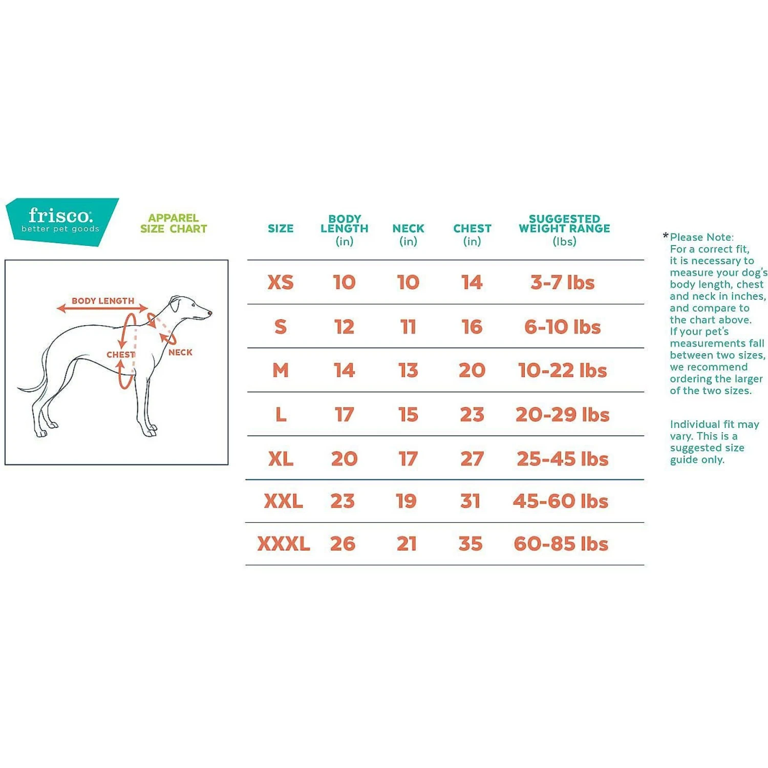 Intended to be used for short duration, under close supervision. Always supervise pet to ensure they do not destroy or ingest product. May contain small parts. Not suitable for children. Inspect regularly and replace if any part becomes damaged. For the perfect fit, measure your pet carefully when selecting a size from the Size tab. Sizing recommendations per breed are only guesstimates, since no two dogs are exactly alike.
