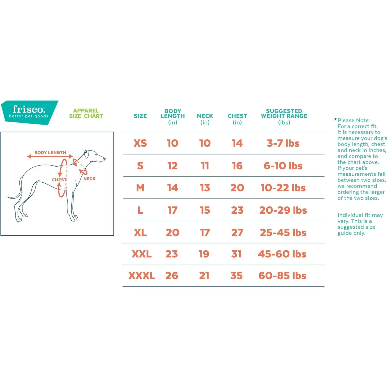 Intended to be used for short duration, under close supervision. Always supervise pet to ensure they do not destroy or ingest product. May contain small parts. Not suitable for children. Inspect regularly and replace if any part becomes damaged. For the perfect fit, measure your pet carefully when selecting a size from the Size tab. Sizing recommendations per breed are only guesstimates, since no two dogs are exactly alike.